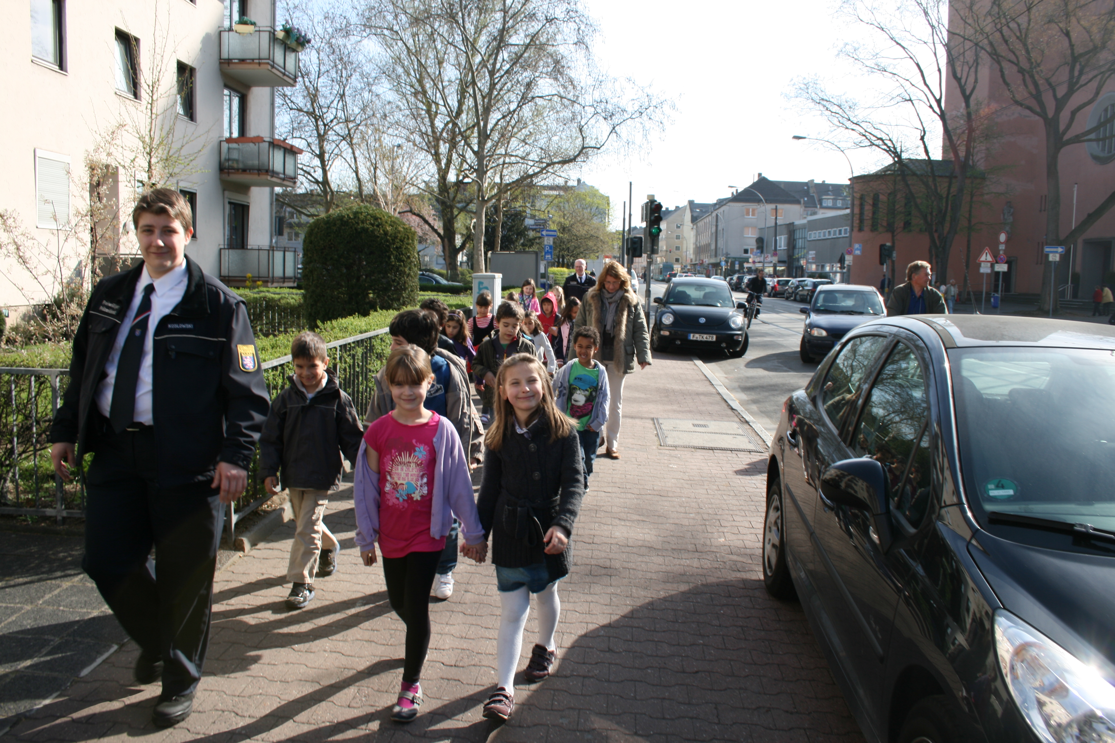 Begehung der Niederräder Noteingänge mit Schülern und dem Frankfurter Freiwilligen Polizeidienst (2012)